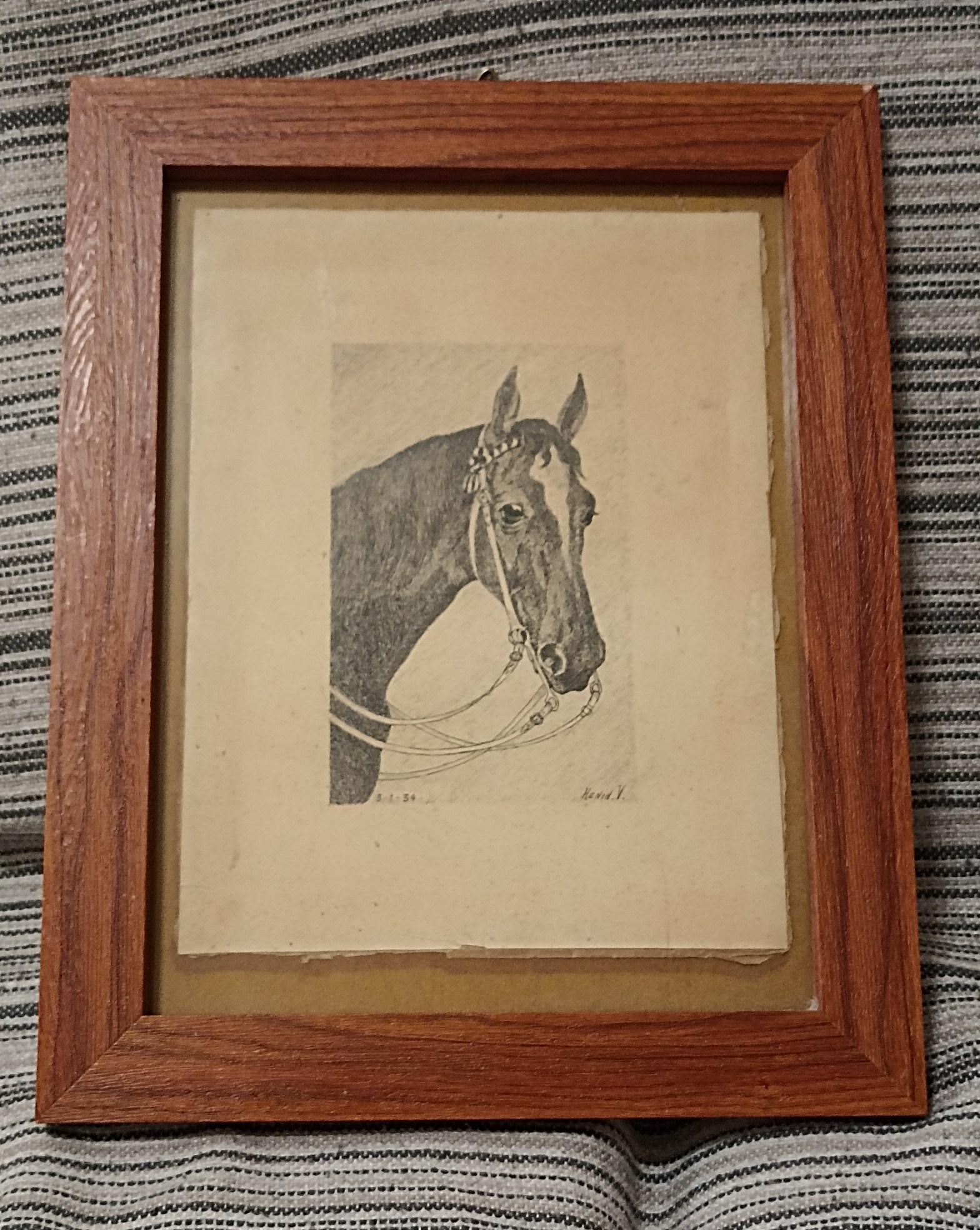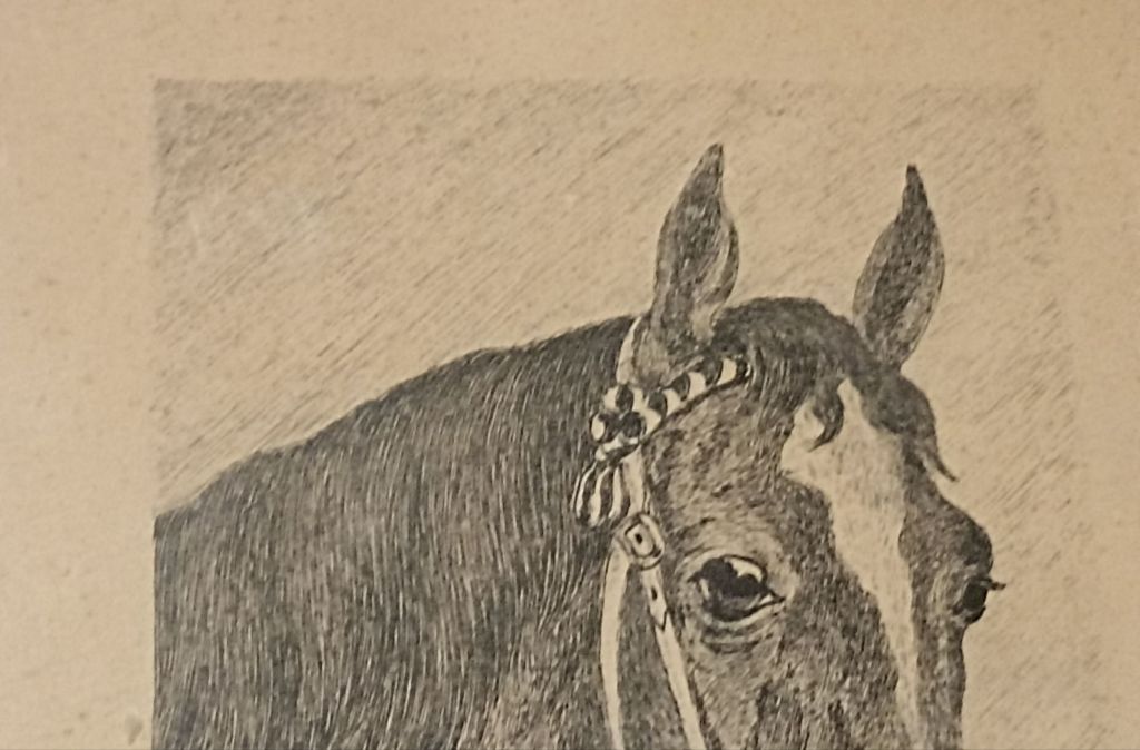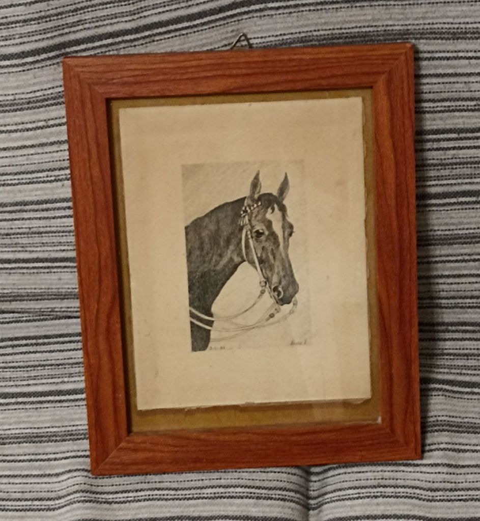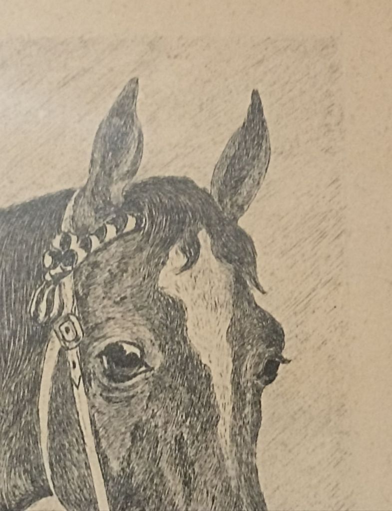 YGRABADO ANTIGUO Y ORIGINAL DE 1934, FIRMADO POR EL AUTOR HENIN. V.ESTA EN BUEN ESTADO , REPRESENTA UNA CABEZA DE CABALLO DE CARRERA, HECHO EN PAPEL DEL TIEMPO, ENMARCADO LA PARTE VISIBLE MIDE 8,5 X14 CM, ENMARCADO MIDE APROXIMADAMENTE 23X29 CM,PESA 532 GR..