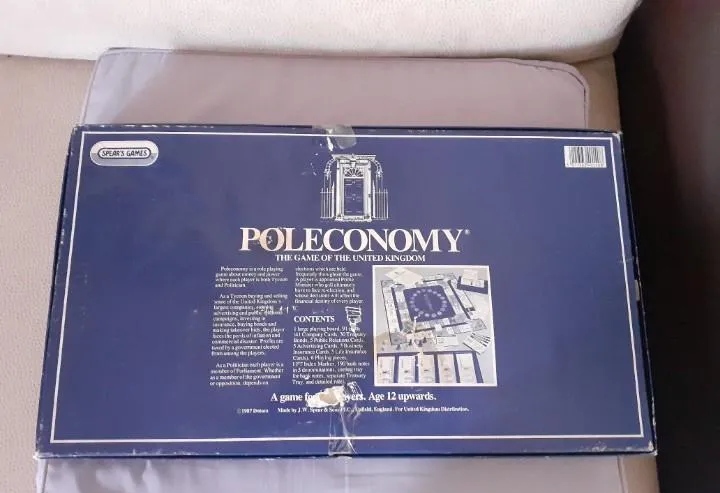 VENDO JUEGO DE MESA VINTAGE(1987), THE GAME OF UNITED KINGDOM, POLECONOMY, SPEAR’S GAMESEL JUEGO ESTA COMPLETO USADO EN BUEN ESTADO, SOLAMENTE LA CAJA TIENE ALGÚN DESPERFECTOS, PESA 1,350 KG Y MIDE 50X30X5CM,GASTO DE ENVIO Y EMBALAJE A CARGO DEL COMPRADOR SEGÚN TARIFA ACTUALES DE AGENCIA DE TRANSPORTE O CORREOS QUE SE QUIERE UTILIZAR, NO ME AGO CARGO DE EVENTUALES DAÑOS O PÉRDIDAS QUE PUEDA CAUSAR EL SERVICIO DE TRANSPORTE