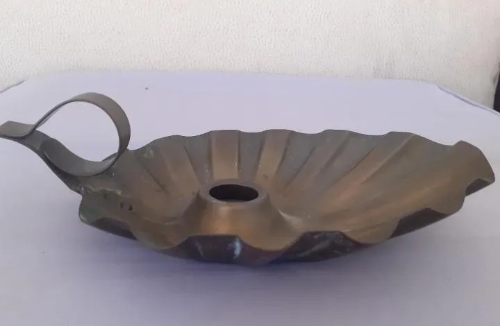 VENDO PORTAVELA DE BRONCE VINTAGE, CON FORMA DE CONCHA, USADO EN BUEN ESTADO, PESA 200 GR., GASTO DE ENVIO Y EMBALAJE A CARGO DEL COMPRADOR SEGÚN TARIFA ACTUALES DE AGENCIA DE TRANSPORTE O CORREOS QUE SE QUIERE UTILIZAR, NO ME AGO CARGO DE EVENTUALES DAÑOS O PÉRDIDAS QUE PUEDA CAUSAR EL SERVICIO DE TRANSPORTE