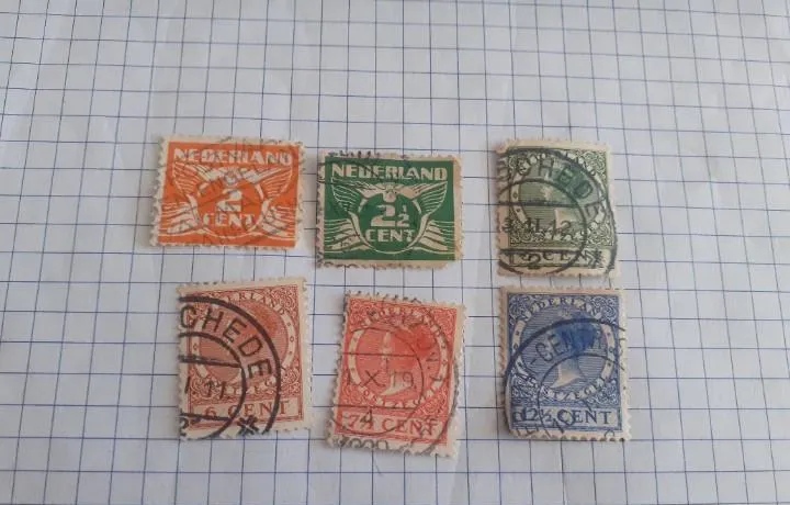 VENDO 6 SELLOS DE PAISES BAJOS DE 1924-26-28 ,REPRESENTAN NUMEROS Y REINA WILHEMINA DE DIFERENTES VALORES⬇️⬇️