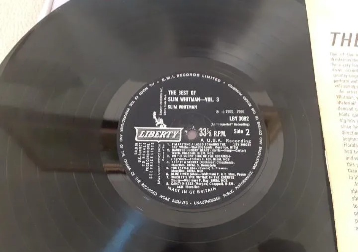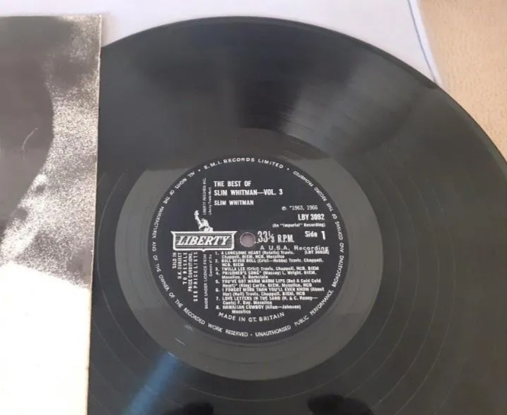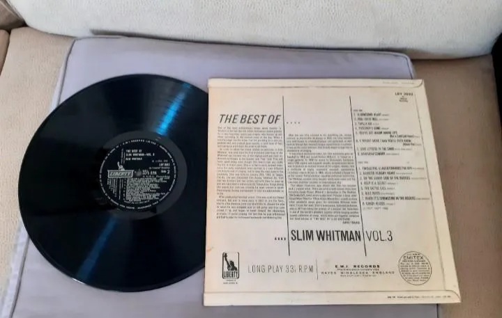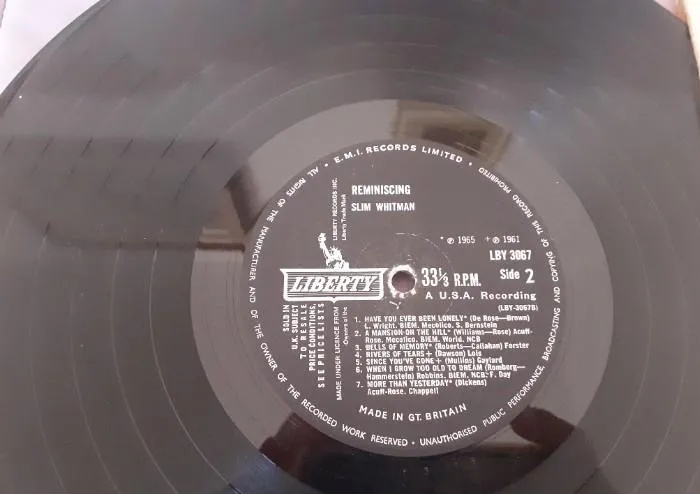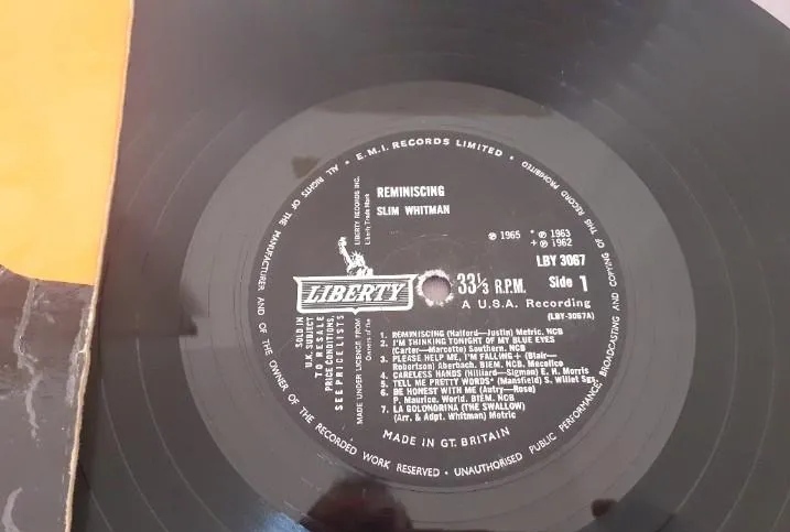 VENDO DISCO DE VINILO VINTAGE 1965,SLIM WHITMAN REMINISHING, LIBERTY LBY 3067, USADO, EN BUEN ESTADO , PESA 240 GR, GASTOS DE ENVIO Y EMBALAJE A CARGO DEL COMPRADOR SEGÚN TARIFA ACTUALES DE AGENCIA DE TRANSPORTE O CORREOS QUE SE QUIERE UTILIZAR, NO ME AGO CARGO DE EVENTUALES DAÑOS O PÉRDIDAS QUE PUEDA CAUSAR EL SERVICIO DE TRANSPORTE O CORREOS