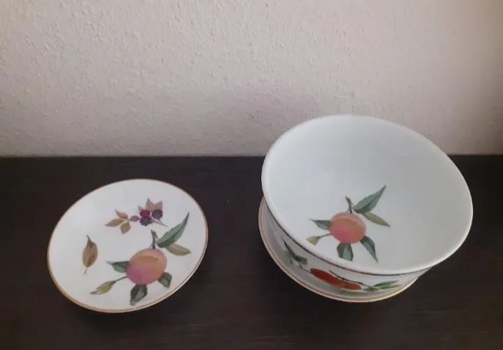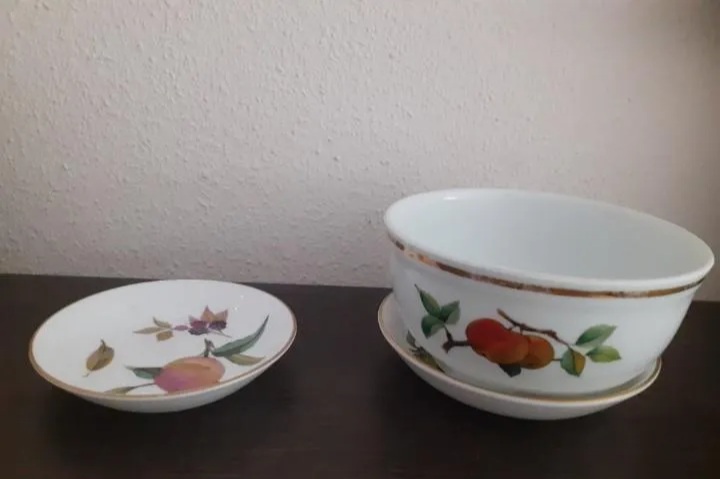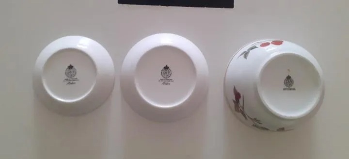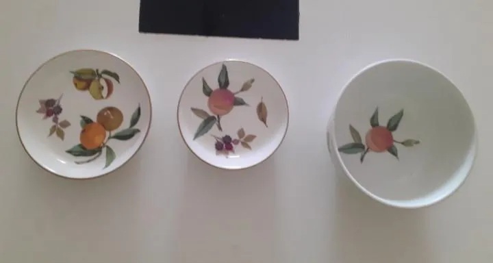 VENDO CONJUNTO DE PORCELANA, CON 2 PLATILLOS DE ROYAL WORCESTER ARDEN 1974(FOTO),MAS UN CUENCO PEQUEÑO ROYAL WORCESTER((FOTO)TODOS MUY POCO USADOS EN BUEN ESTADO PESA EN TOTAL 411 GR., EL PLATILLO MÁS PEQUEÑO MIDE 10X10,EL OTRO PLATILLO Y EL CUENCO MIDE 12X12 CM APROXIMADAMENTE, GASTOS DE ENVIO Y EMBALAJE A CARGO DEL COMPRADOR SEGÚN TARIFA ACTUALES DE AGENCIA DE TRANSPORTE O CORREOS QUE SE QUIERE UTILIZAR, NO ME AGO CARGO DE EVENTUALES DAÑOS O PÉRDIDAS QUE PUEDA CAUSAR EL SERVICIO DE TRANSPORTE