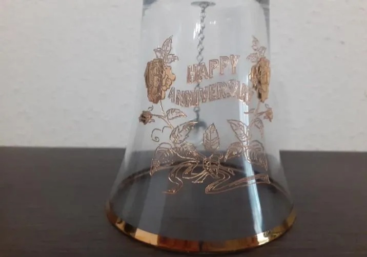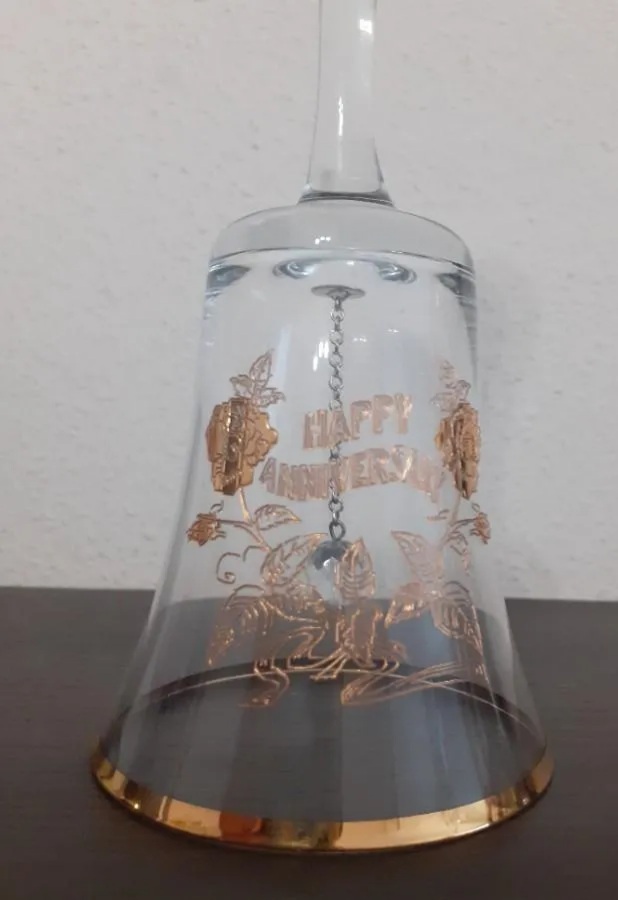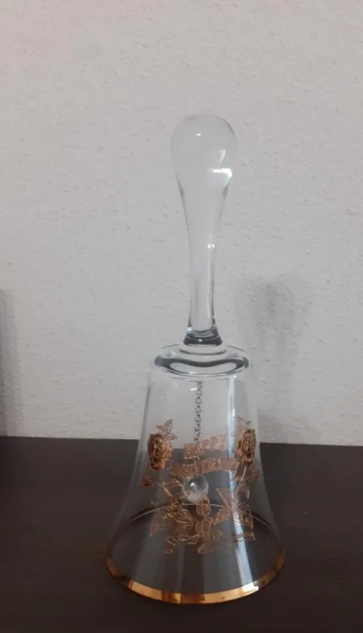 VENDO CAMPANA DE VIDRIO TRANSPARENTE VINTAGE DE FELIZ ANIVERSARIO CON BONITO DETALLES FLORALES Y BORDE DE ORO,MUY POCO USO, MIDE 20 CM DE ALTO Y 8 CM DE LARGO Y ANCHO, PESA 150 GR. ESTÁ EN BUEN ESTADO, GASTOS DE ENVIO Y EMBALAJE A CARGO DEL COMPRADOR SEGÚN TARIFA ACTUALES DE AGENCIA DE TRANSPORTE O CORREOS QUE SE QUIERE UTILIZAR, NO ME AGO CARGO DE EVENTUALES DAÑOS O PÉRDIDAS QUE PUEDA CAUSAR EL SERVICIO DE TRANSPORTE