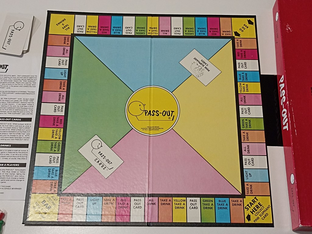 VENDO JUEGO PARA ADULTOS VINTAGE DE 1986,PASS OUT,DE FRANK BRESEE’S,COMPLETO EN MUY BUEN ESTADO,,CON INSTRUCCIONES,TABLA ENTERA SIN MARCA O RUPTURA,2 MAZOS DE 28 CARTAS CADA UNO,5 FICHAS Y 2 DADOS,LA CAJA TIENE ALGÚN LIGERO DESGASTE Y DESPERFECTOS,HECHO POR PAUL LAMOND GAMES,EN TOTAL PESA 640 GR ,MIDE 46CM DE LARGO,24 CM DE ALTO Y 4 CM DE PROFUNDO, GASTOS DE ENVÍO Y EMBALAJE ES A CARGO DEL COMPRADOR SEGÚN TARIFAS ACTUALES DE CORREO O AGENCIA DE TRANSPORTE QUE SE QUIERE UTILIZAR, NO ME AGO CARGO DE EVENTULES DAÑOS O PERDIDAS QUE PUEDA CAUSAR EL SERVICIO DE TRANSPORTE O DE CORREOS