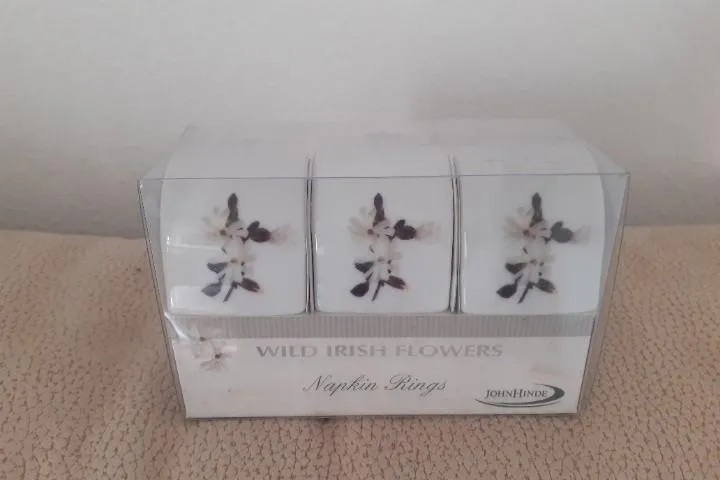 VENDO SET DE 3 SERVILLETEROS DE PORCELANA CON DECORACIÓN FLORAL DE JOHN HINDE,SIN USAR,CAJA ORIGINAL, PESA 420 GR., ESTA EN BUEN ESTADO, GASTOS DE ENVIO Y EMBALAJE A CARGO DEL COMPRADOR SEGÚN TARIFA ACTUALES DE AGENCIA DE TRANSPORTE O CORREOS QUE SE QUIERE UTILIZAR, NO ME AGO CARGO DE EVENTUALES DAÑOS O PÉRDIDAS QUE PUEDA CAUSAR EL SERVICIO DE TRANSPORTE O CORREOS