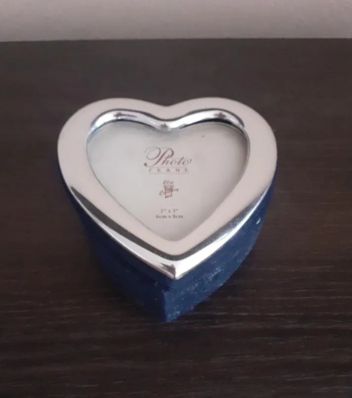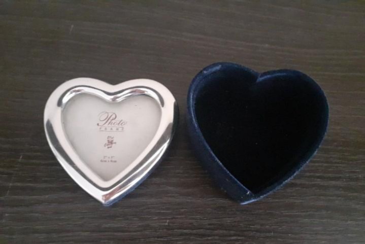 VENDO CAJA DE JOYAS A FORMA DE CORAZÓN CON FOTO 21 TH CENTURY,REVESTIDO DE TEJIDO, PESA 80 GR⬇️
