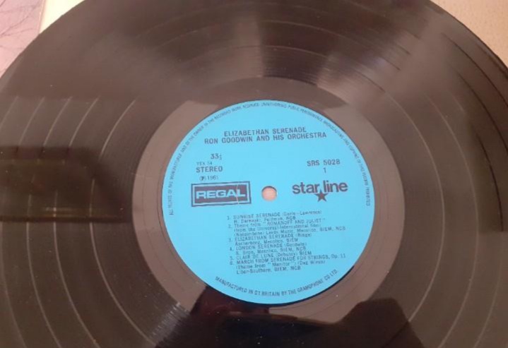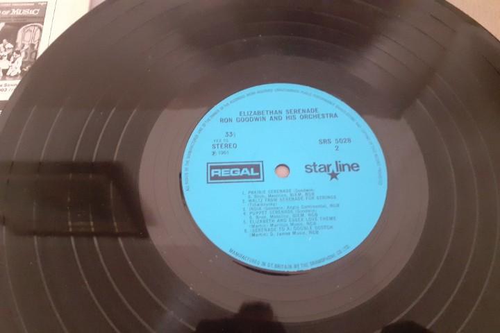 VENDO DISCO DE VINILO VINTAGE 1961, RON GOODWIN AND HIS ORCHESTRA, ELISABETHAN SERENADE, STAR LINE, SRS 5028,STEREO, LP 33 1/2 R. P. M., HECHO EN GRAN BRETAÑA